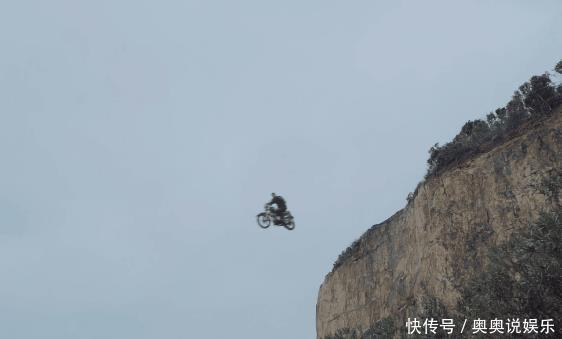 之后邪派骑着摩托车腾空一跃横跨陡壁峭壁,清静开松从容落地。