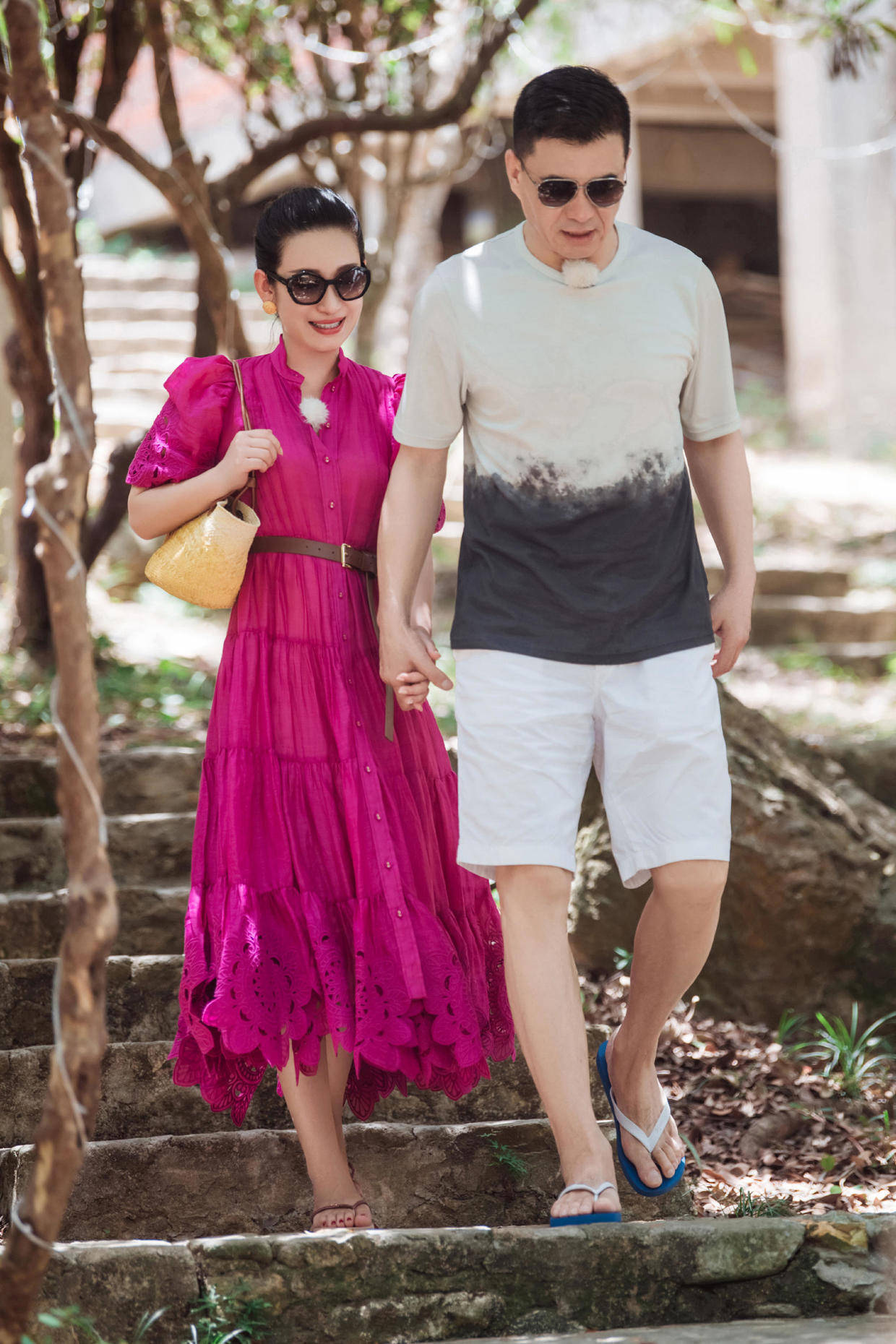 玫红色连衣裙不像大红色那般挑气质,看似秀气,实则对肤色包容性强。虽粉色调居多,但注入几分减龄气质,合适出行度假时衣服。
