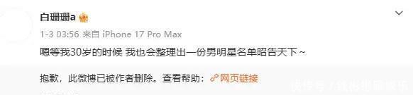 事情得从17号晚上九点多提及,这个“白珊珊a”遽然发了条依稀其辞的动态:“他的床照1w块钱谁买”,这话一出来,评论区遽然欣忭了,环球齐在猜这个“他”是谁,是圈内东说念主照旧素东说念主?